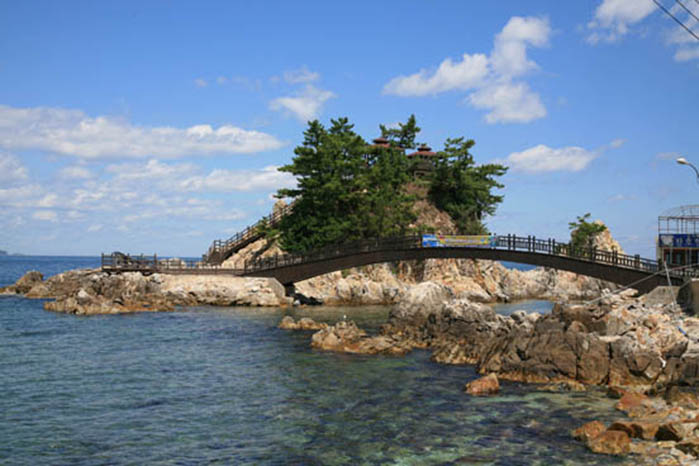 수로부인헌화공원소개성덕왕 때에 순정공(純貞公)이 강릉태수(江陵太守)로 가는 도중 바닷가에서 점심을 먹고 있었다. 그 옆에 병풍같은 바위벽이 있어 바다에 맞닿았는데 높이가 천 길이나 되었고, 그 위에는 철쭉꽃이 한창 피어 있었다. 공의 부인 수로가 그것을 보고 옆 사람들에게 "저 꽃을 꺾어다 바칠 자 그 누구뇨?" 하니 모시는 사람들이 모두 "사람이 발 붙일 곳이 못 됩니다." 하고 사양하였다. 그 곁에 늙은 노인이 암소를 끌고 지나다가 부인의 말을 듣고 꽃을 꺾어 노래를 지어 바쳤으나 그가 어떤 사람인지 알지 못했다. 자료출처 : 삼척문화관광(samcheok.go.kr/tour) 펜션에서 약 4.66km 자동차로 약 9분
