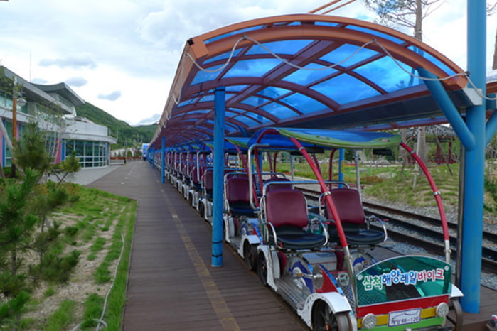 삼척레일바이크(용화)곰솔과 기암괴석으로 어우러진 국내 유일의 해양레일바이크는 아름다운 동해의 해안선을 따라 5.4km복선으로 운행되고 있으며 루미나리에와 레이저 쇼가 연출되는 환상의 터널은 잠시나마 신비로운 해저터널을 여행한 듯 하다. 수려한 디자인과 친환경으로 설계된 레일바이크는 가족과 친구와 연인끼리 색다른 체험과 즐거움으로 아름다운 삼척의 추억을 듬뿍 가져갈 베스트 관광코스이다. 자료출처 : 삼척문화관광(samcheok.go.kr/tour) 펜션에서 약 1.47km 자동차로 약 5분